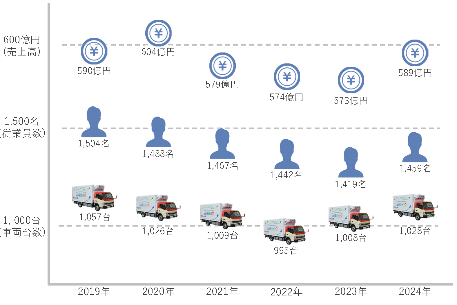 | 売上高・従業員数・車両台数の 過去数年の推移 |